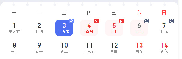 您好!2024年清明放假時(shí)間安排如下: